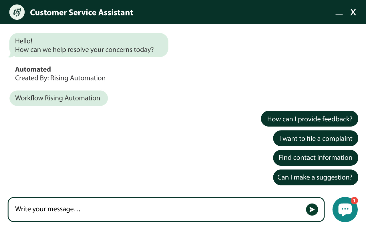 Test the Widget: Interact with the chatbox by pressing a quick-action button or typing a message. You should see an automated response.